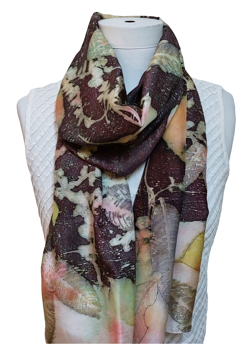 Classic naturally dyed and eco-printed silk scarves are perfect for any occasion. Drape it, frame it, stitch it, gift it!
