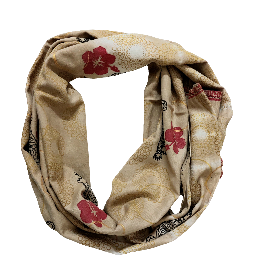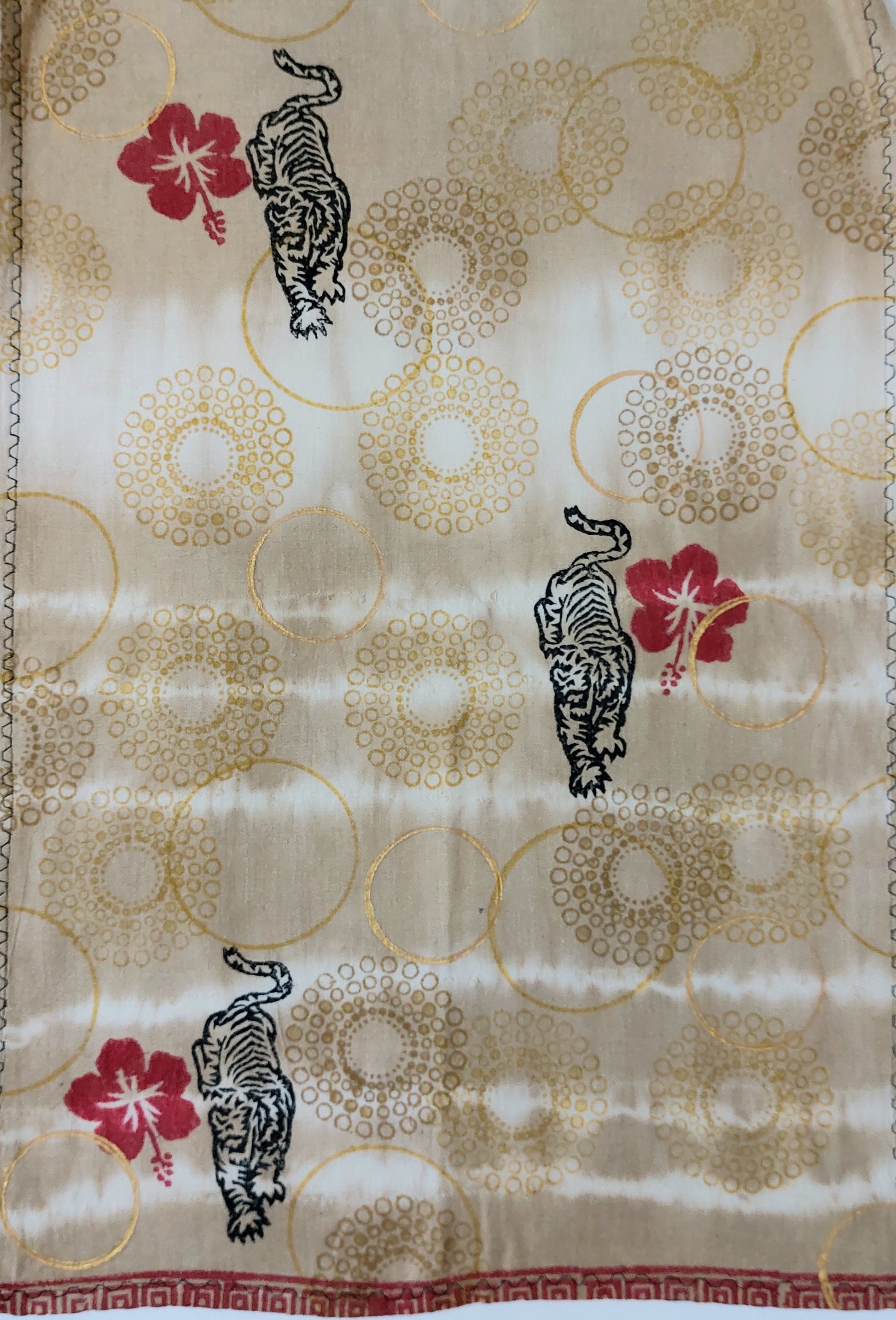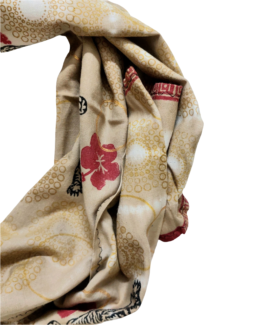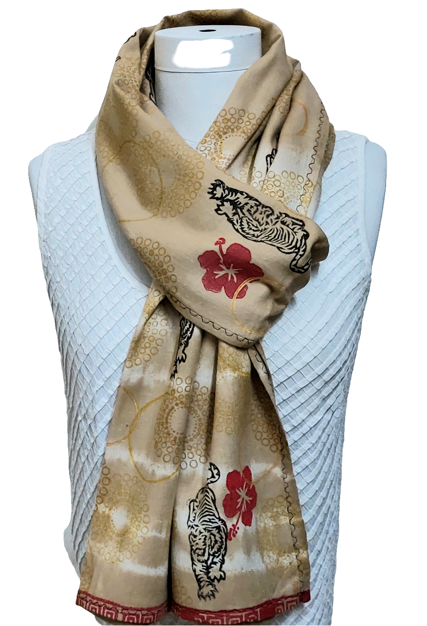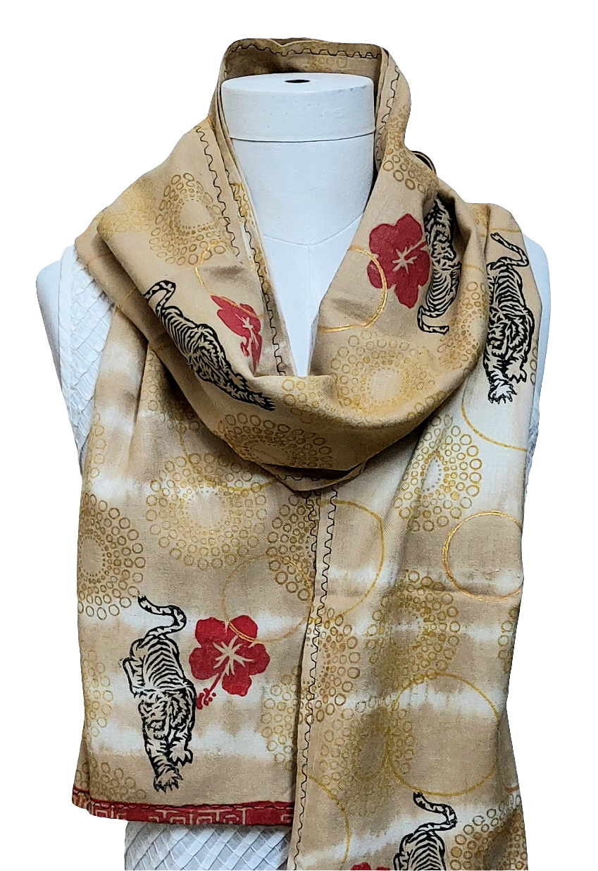 Shakti —Indiespiral's tribute to the Divine Feminine in all Her glorious forms. A limited edition silk and linen scarves to celebrate strength, beauty, and grace. The resist dyed patterns and motifs ( tiger and hibiscus) are symbolic of purity, power and protection. More than adornment, they are talismans—an offering to honor the spirit, energy, and infinite beauty of the Divine Feminine within and around us.