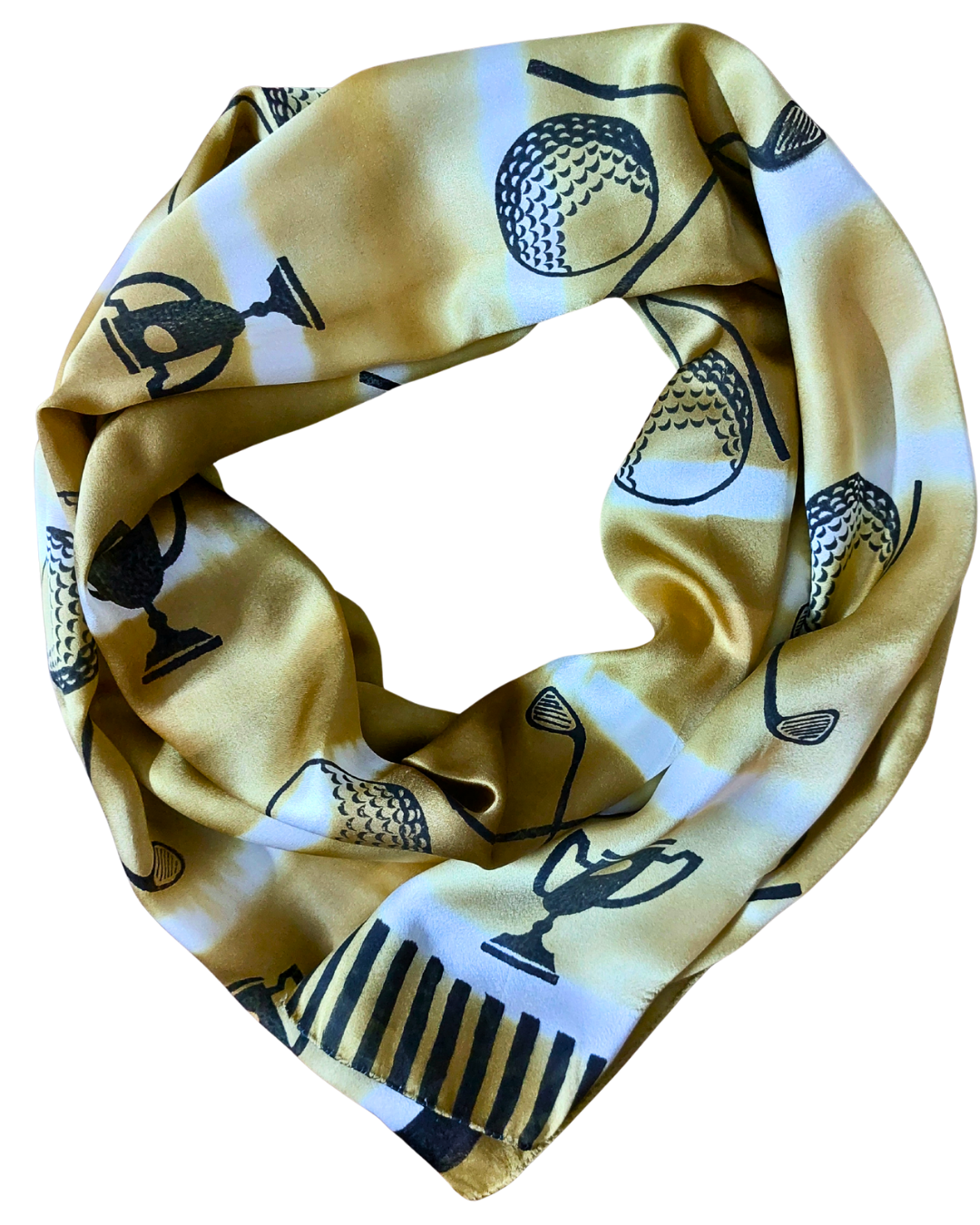 Indiespiral presents the inaugural range of eco dyed & printed silk scarves for golf and polo.